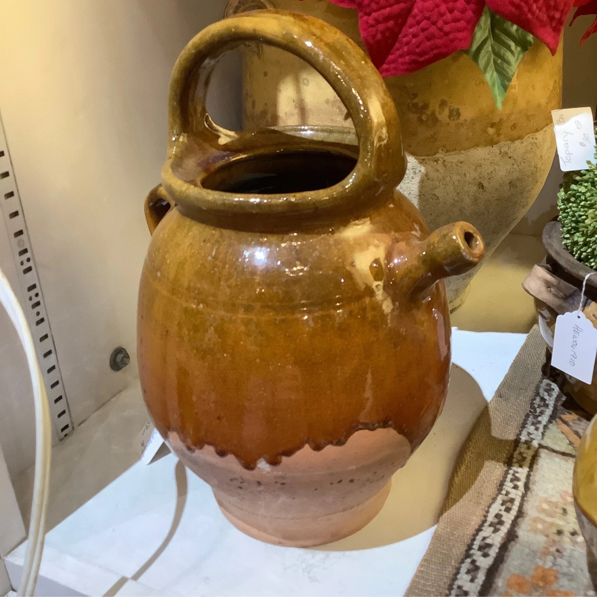 Feast your eyes on the classic beauty of this French semi-glazed brown Gargoulette. Its exquisite craftsmanship will add old-world charm to any table setting. Perfect for serving wines and waters, this timeless piece is sure to impress.